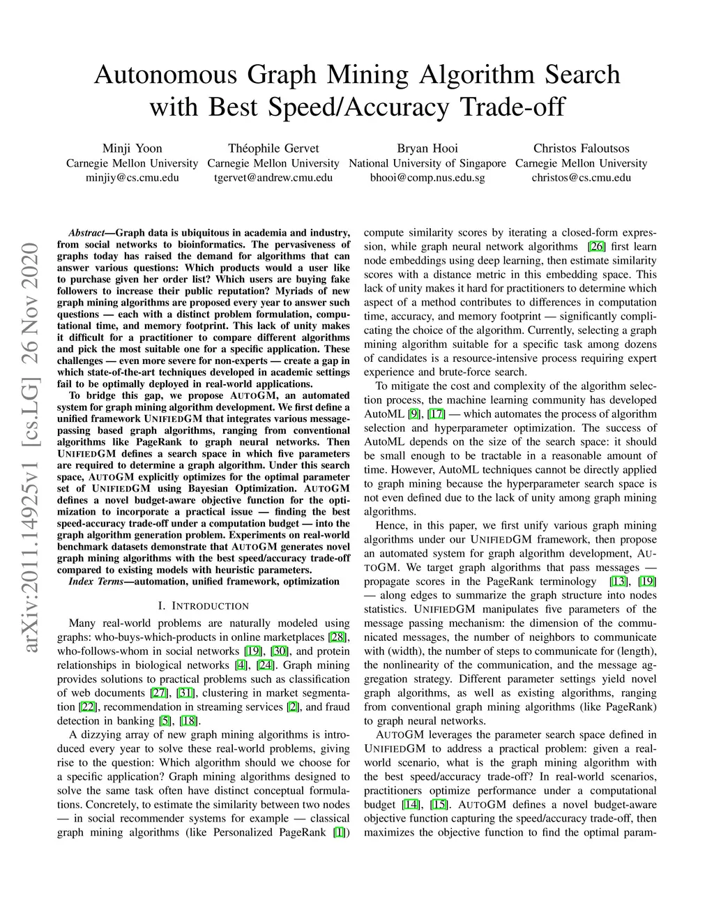 Autonomous Graph Mining Algorithm Search with Best Speed/Accuracy
