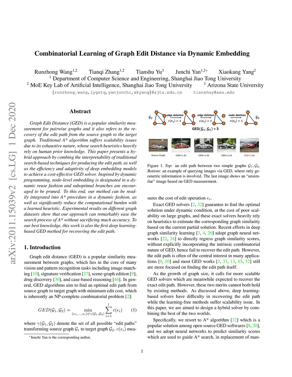 Combinatorial Learning of Graph Edit Distance via Dynamic Embedding