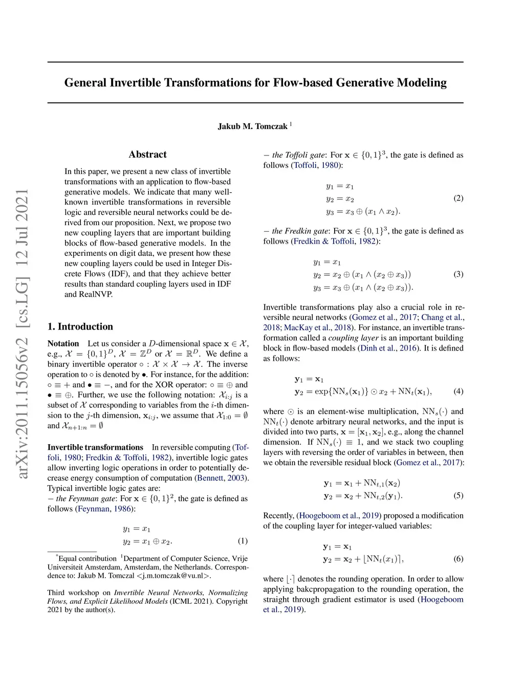 In this paper, we present a new class of invertible transformations with an application to flow-based generative models. We indicate that many well-known invertible transformations in reversible logic and reversible neural networks could be derived from our proposition. Next, we propose two new coupling layers that are important building blocks of flow-based generative models. In the experiments on digit data, we present how these new coupling layers could be used in Integer Discrete Flows (IDF), and that they achieve better results than standard coupling layers used in IDF and RealNVP.