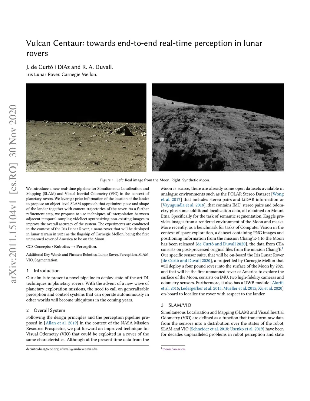 Vulcan Centaur: towards end-to-end real-time perception in lunar rovers