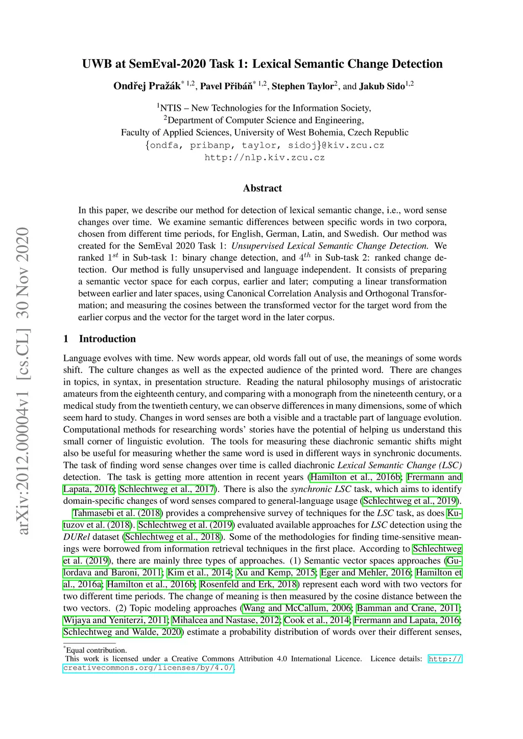 UWB at SemEval-2020 Task 1: Lexical Semantic Change Detection