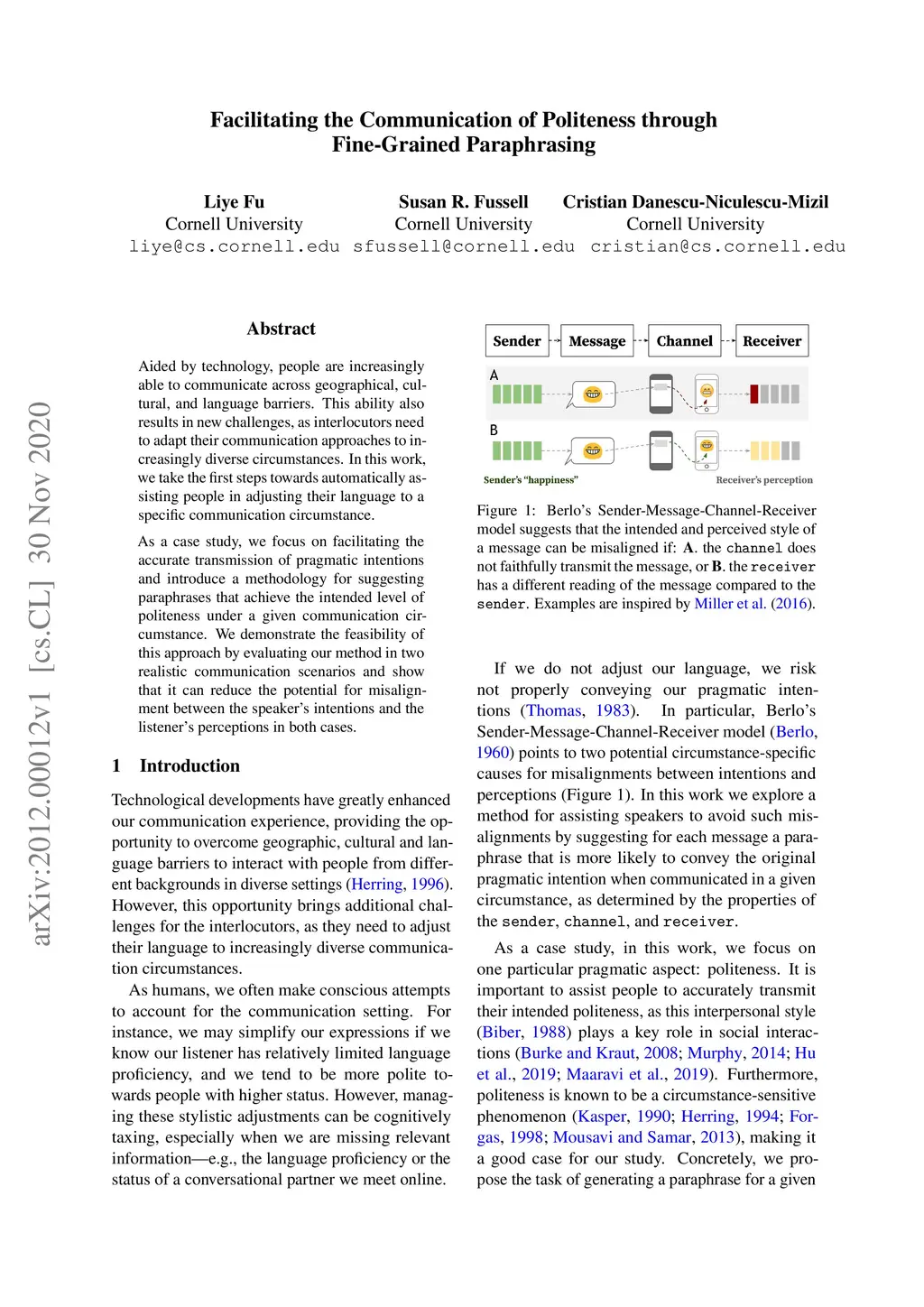Aided by technology, people are increasingly able to communicate across geographical, cultural, and language barriers. This ability also results in new challenges, as interlocutors need to adapt their communication approaches to increasingly diverse circumstances. In this work, we take the first steps towards automatically assisting people in adjusting their language to a specific communication circumstance. As a case study, we focus on facilitating the accurate transmission of pragmatic intentions and introduce a methodology for suggesting paraphrases that achieve the intended level of politeness under a given communication circumstance. We demonstrate the feasibility of this approach by evaluating our method in two realistic communication scenarios and show that it can reduce the potential for misalignment between the speaker's intentions and the listener's perceptions in both cases.