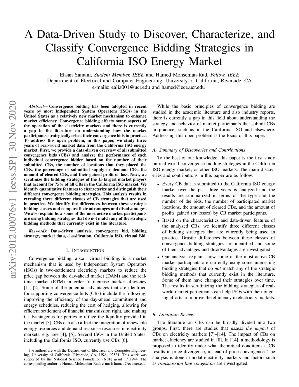 Bidding Strategies in California ISO Energy Market