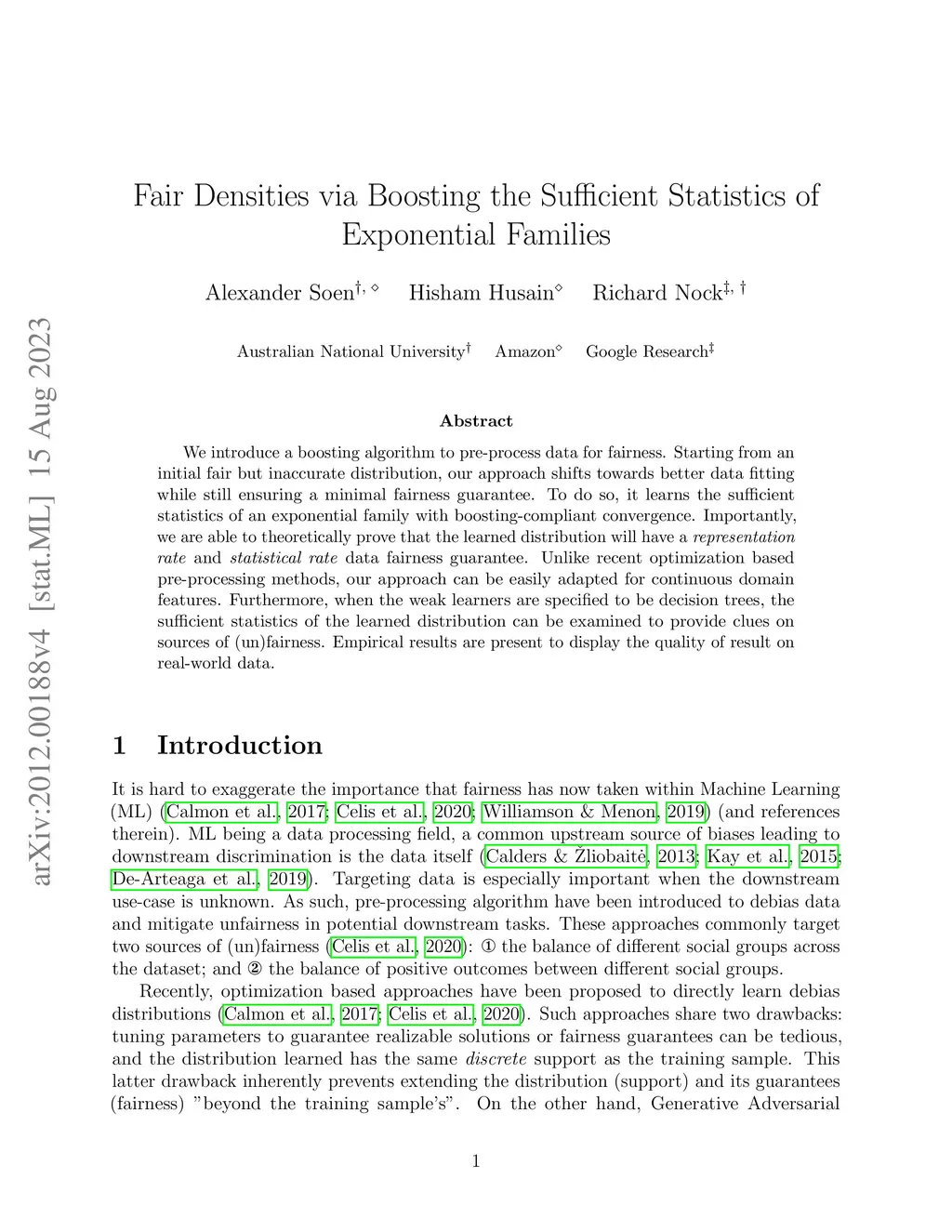 Fair Densities via Boosting the Sufficient Statistics of Exponential