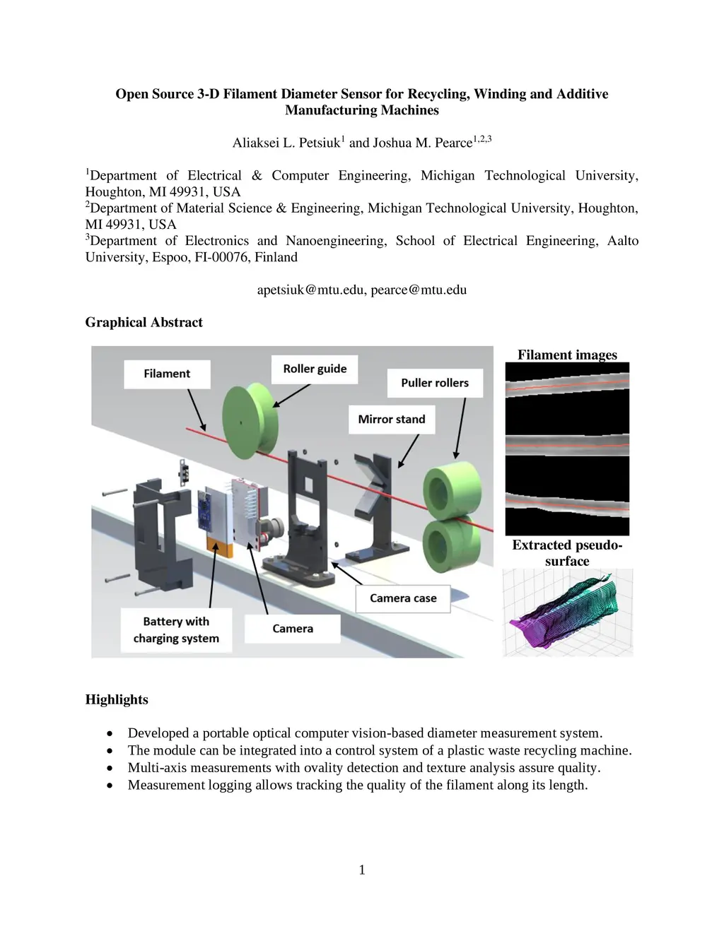 Open Source 3-D Filament Diameter Sensor for Recycling, Winding and