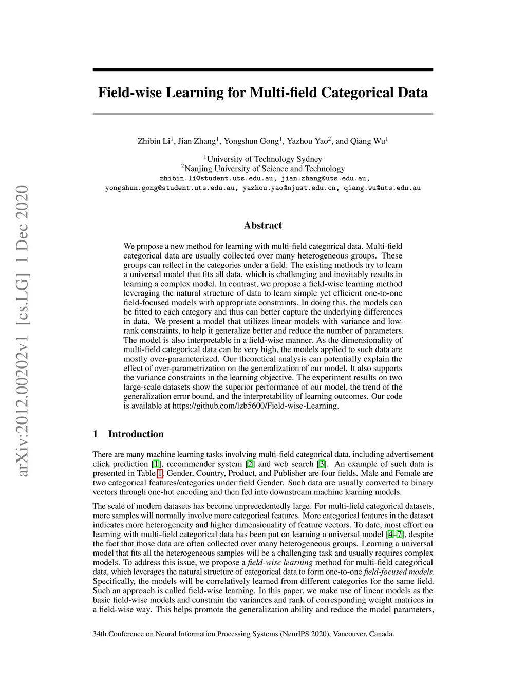 Field-wise Learning for Multi-field Categorical Data