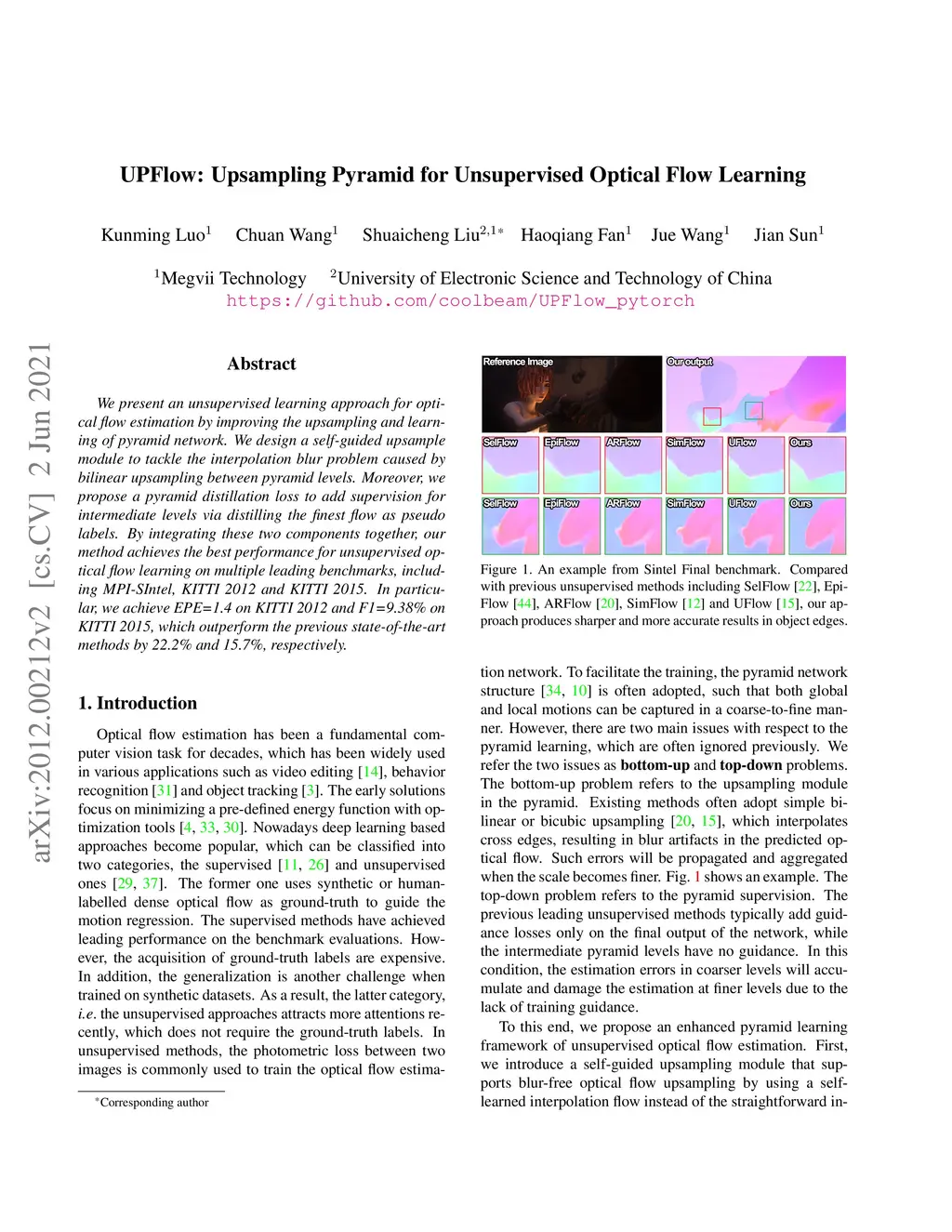 UPFlow: Upsampling Pyramid for Unsupervised Optical Flow Learning