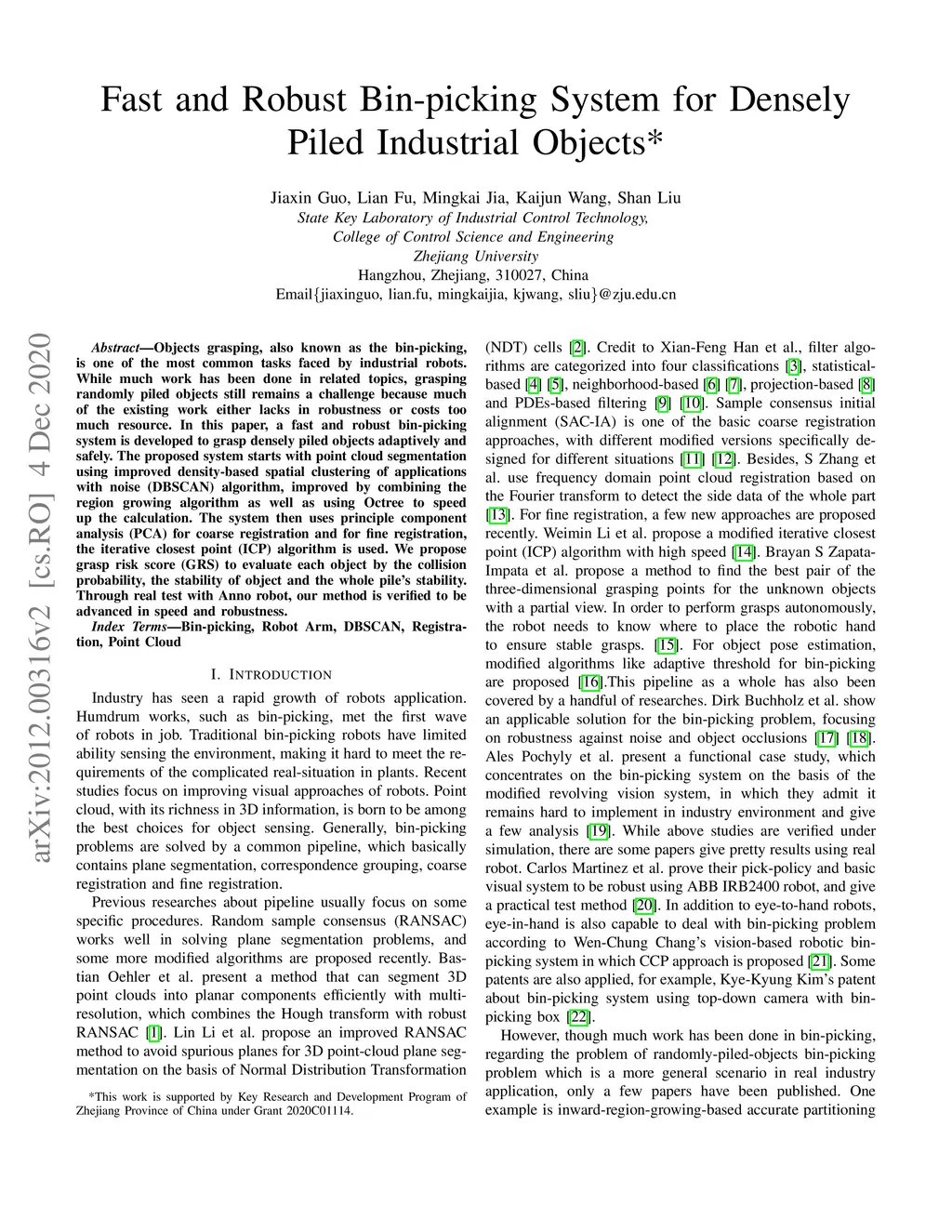 Fast and Robust Bin-picking System for Densely Piled Industrial Objects