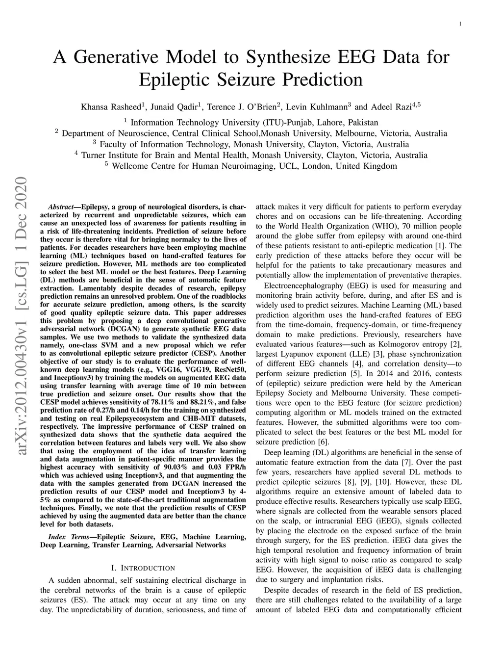 A Generative Model to Synthesize EEG Data for Epileptic Seizure