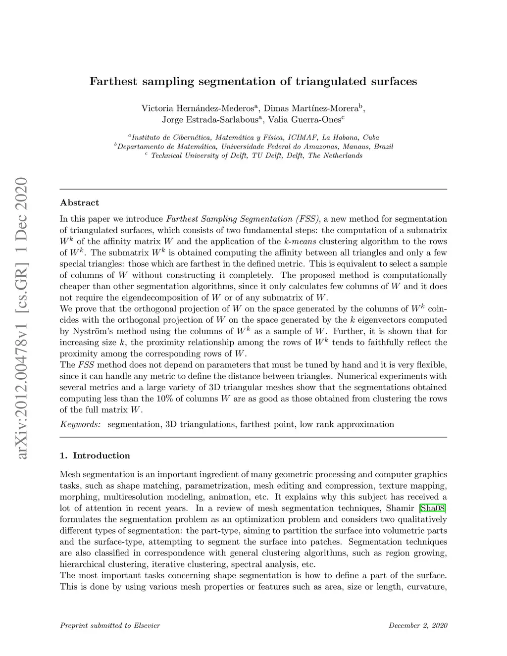 Farthest sampling segmentation of triangulated surfaces