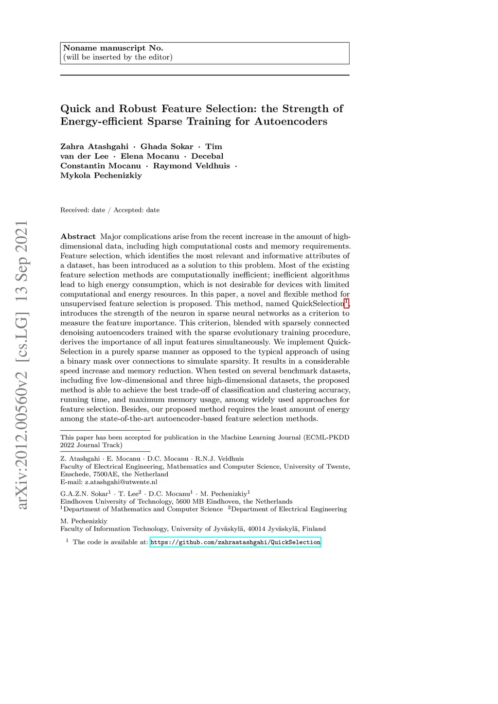 Quick and Robust Feature Selection: the Strength of Energy-efficient