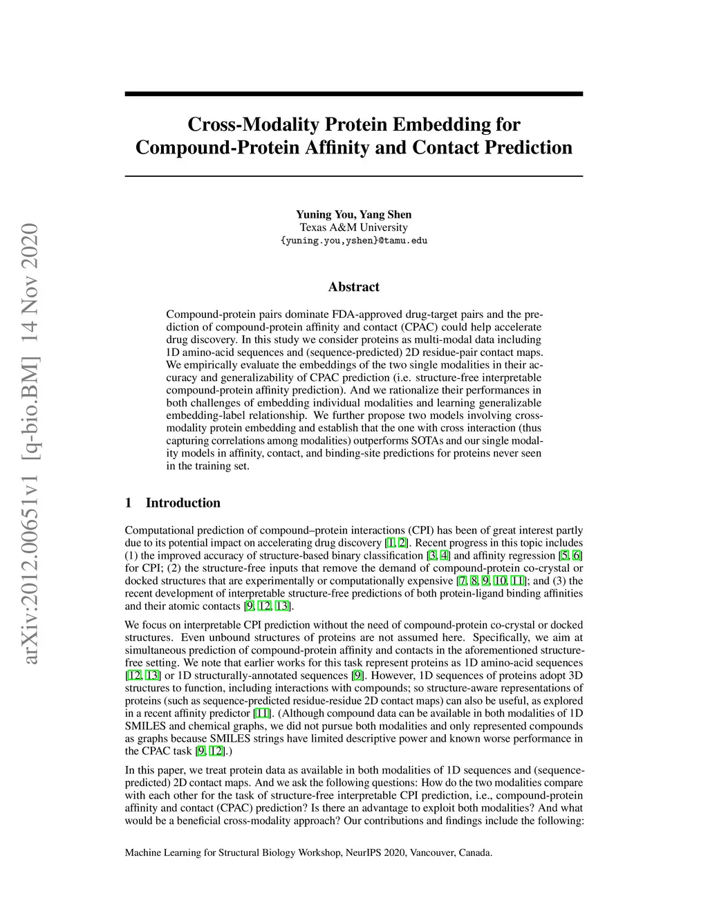 Cross-Modality Protein Embedding for Compound-Protein Affinity and