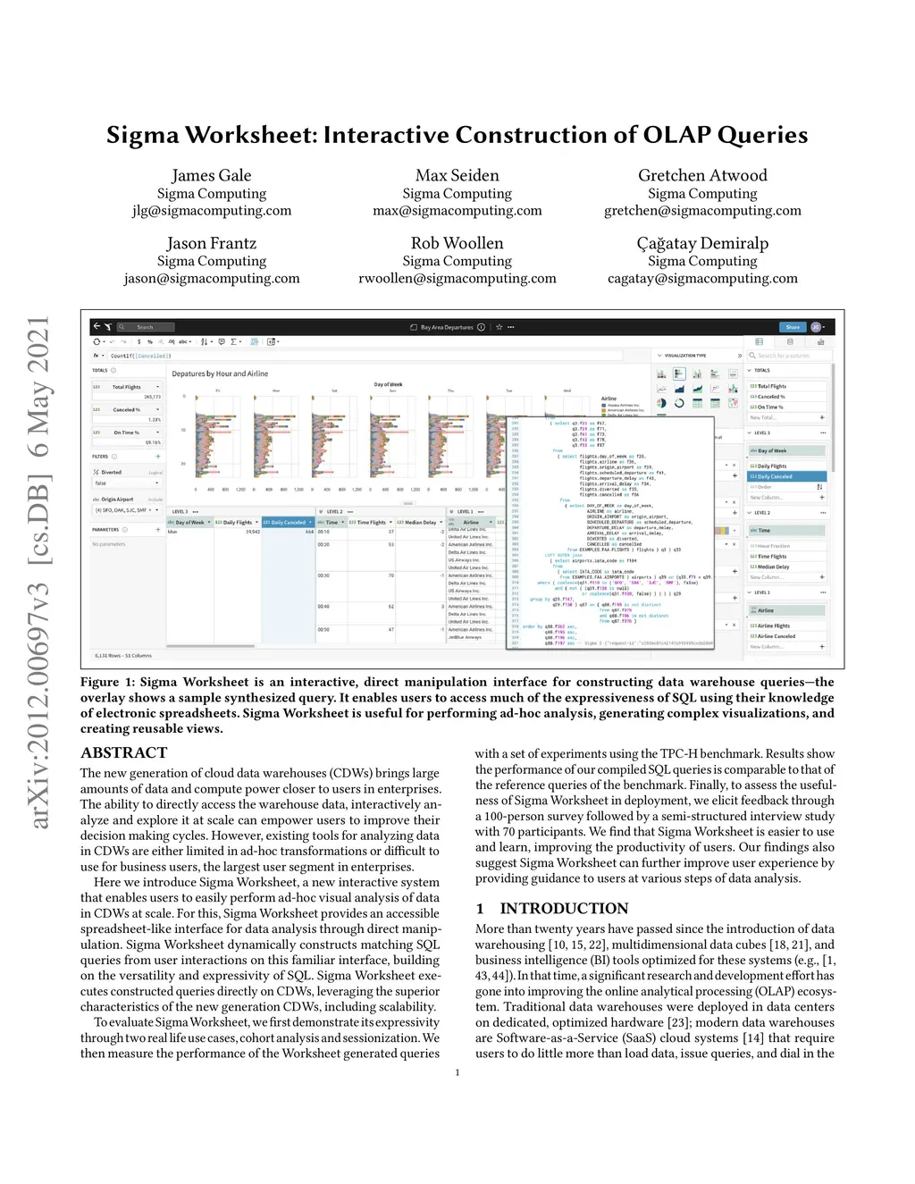 Sigma Worksheet: Interactive Construction of OLAP Queries