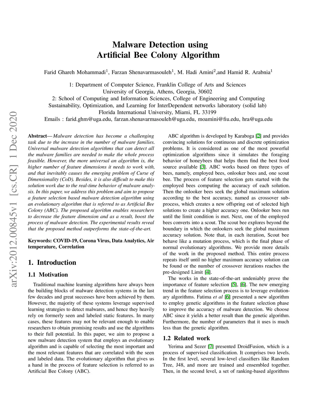 Malware Detection using Artificial Bee Colony Algorithm