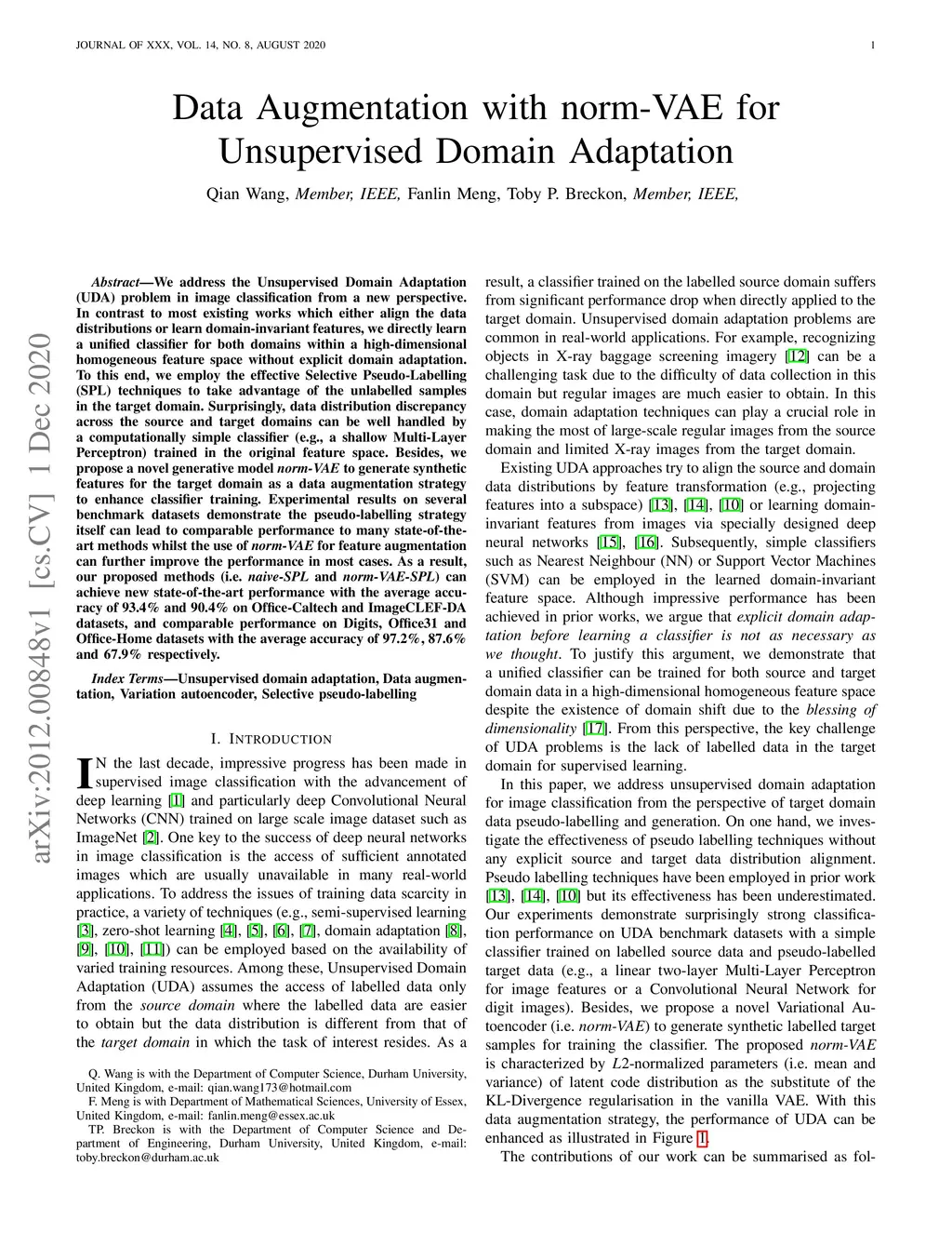 Data Augmentation with norm-VAE for Unsupervised Domain Adaptation