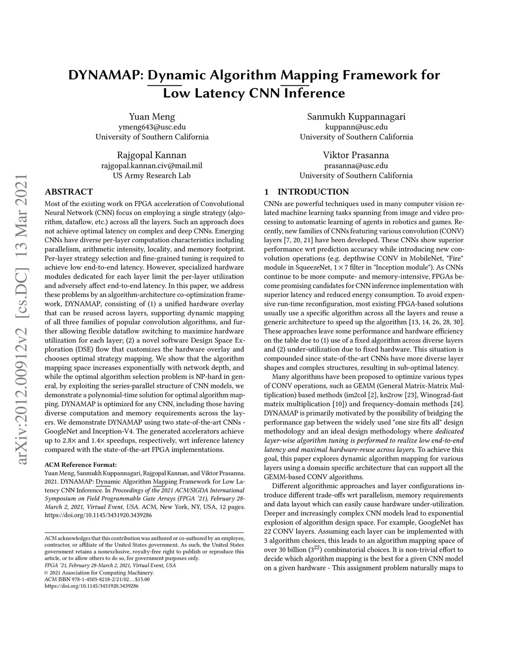 DYNAMAP: Dynamic Algorithm Mapping Framework for Low Latency CNN