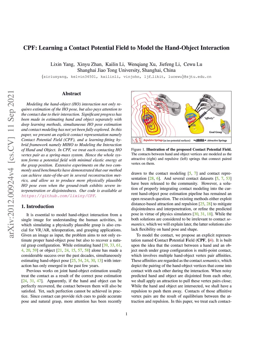 CPF: Learning a Contact Potential Field to Model the Hand-Object
