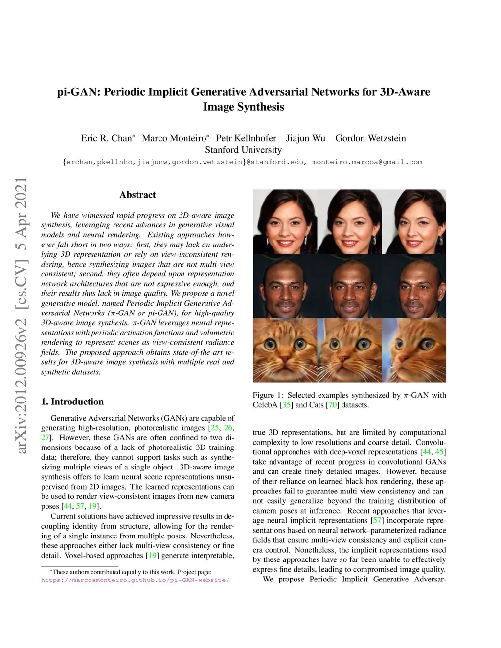 pi-GAN: Periodic Implicit Generative Adversarial Networks for 3D-Aware