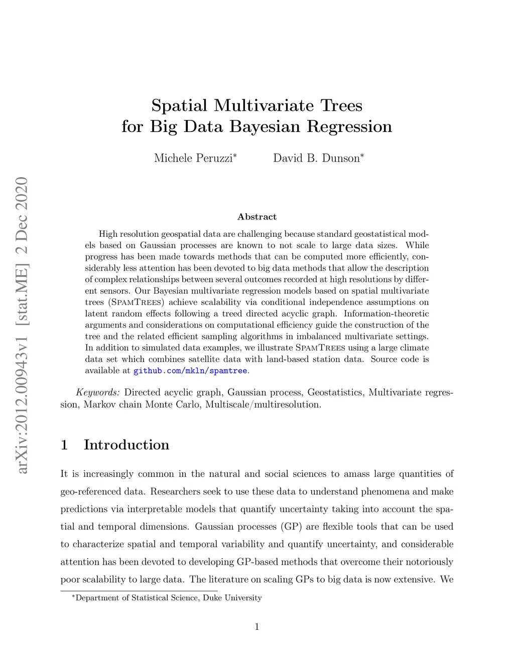 Spatial Multivariate Trees for Big Data Bayesian Regression