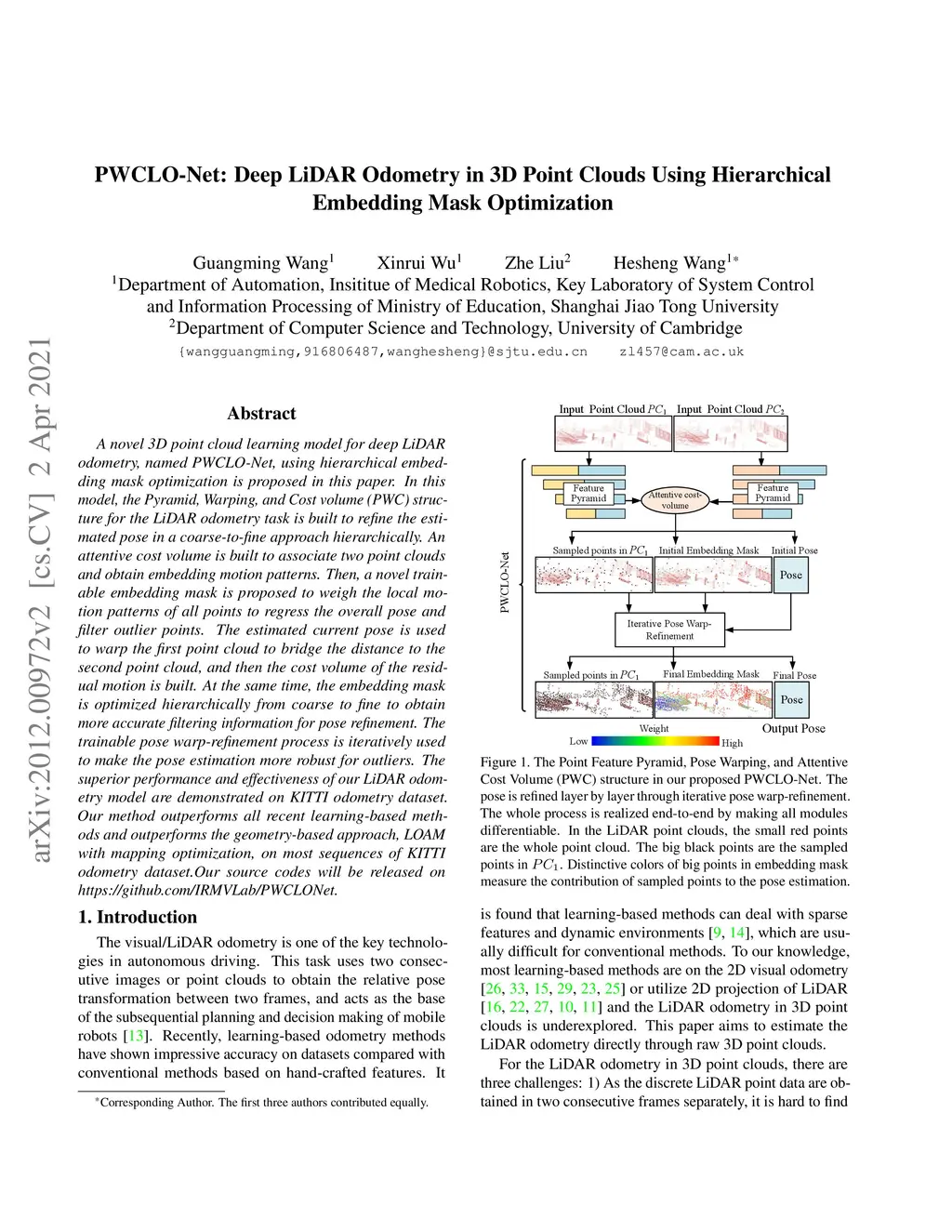 PWCLO-Net: Deep LiDAR Odometry in 3D Point Clouds Using Hierarchical