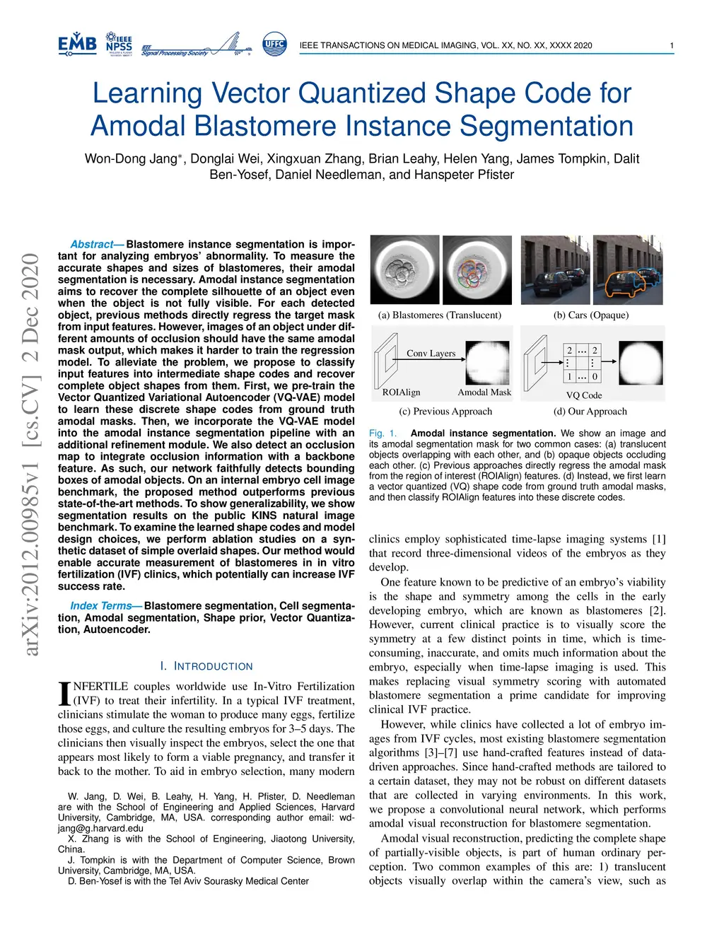 Learning Vector Quantized Shape Code for Amodal Blastomere Instance