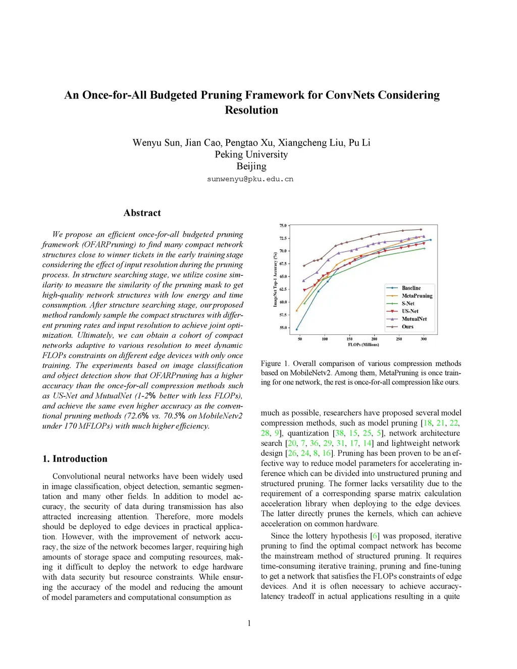 An Once-for-All Budgeted Pruning Framework for ConvNets Considering