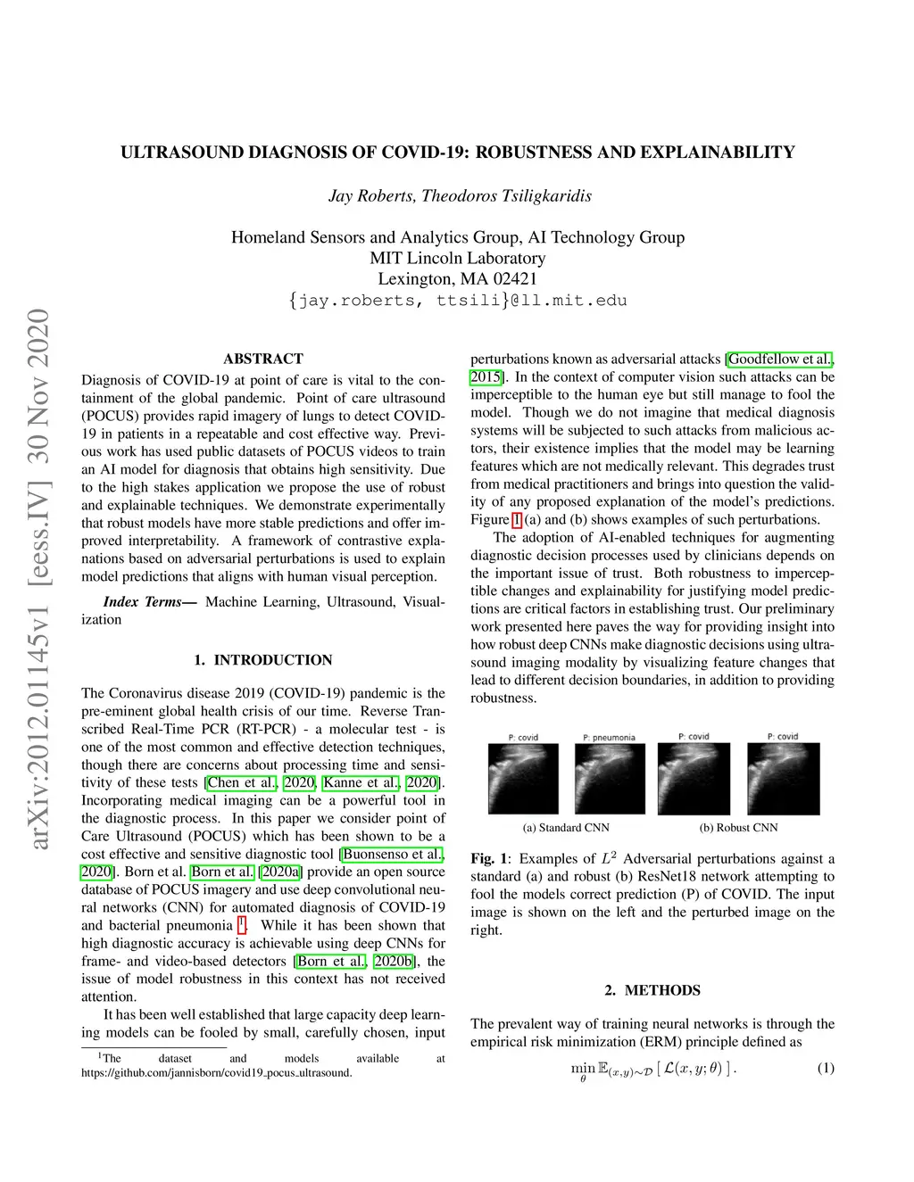 Diagnosis of COVID-19 at point of care is vital to the containment of the global pandemic. Point of care ultrasound (POCUS) provides rapid imagery of lungs to detect COVID-19 in patients in a repeatable and cost effective way. Previous work has used public datasets of POCUS videos to train an AI model for diagnosis that obtains high sensitivity. Due to the high stakes application we propose the use of robust and explainable techniques. We demonstrate experimentally that robust models have more stable predictions and offer improved interpretability. A framework of contrastive explanations based on adversarial perturbations is used to explain model predictions that aligns with human visual perception.