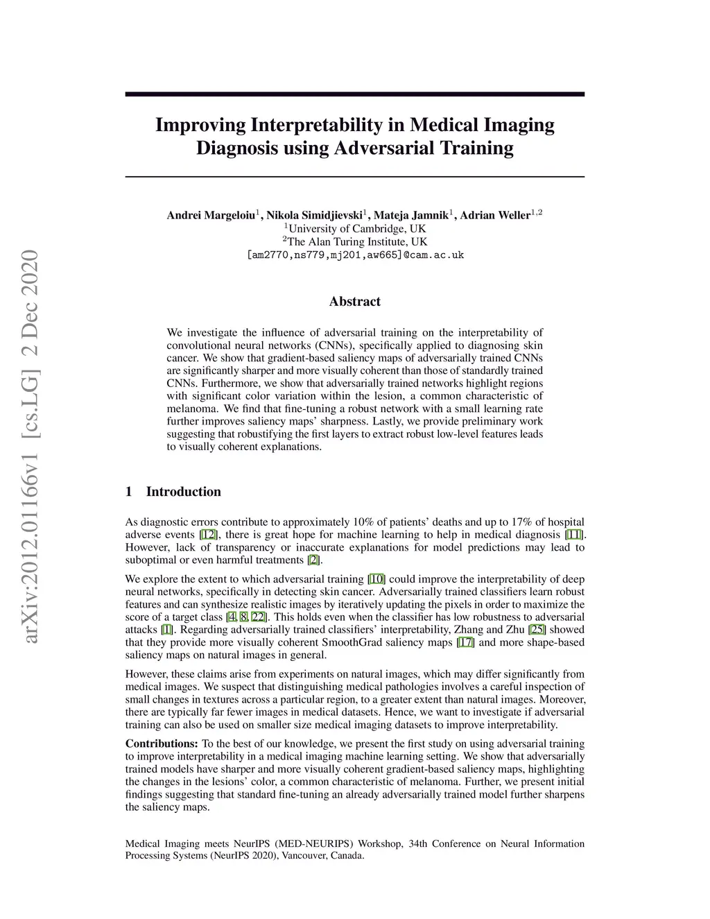 We investigate the influence of adversarial training on the interpretability of convolutional neural networks (CNNs), specifically applied to diagnosing skin cancer. We show that gradient-based saliency maps of adversarially trained CNNs are significantly sharper and more visually coherent than those of standardly trained CNNs. Furthermore, we show that adversarially trained networks highlight regions with significant color variation within the lesion, a common characteristic of melanoma. We find that fine-tuning a robust network with a small learning rate further improves saliency maps' sharpness. Lastly, we provide preliminary work suggesting that robustifying the first layers to extract robust low-level features leads to visually coherent explanations.