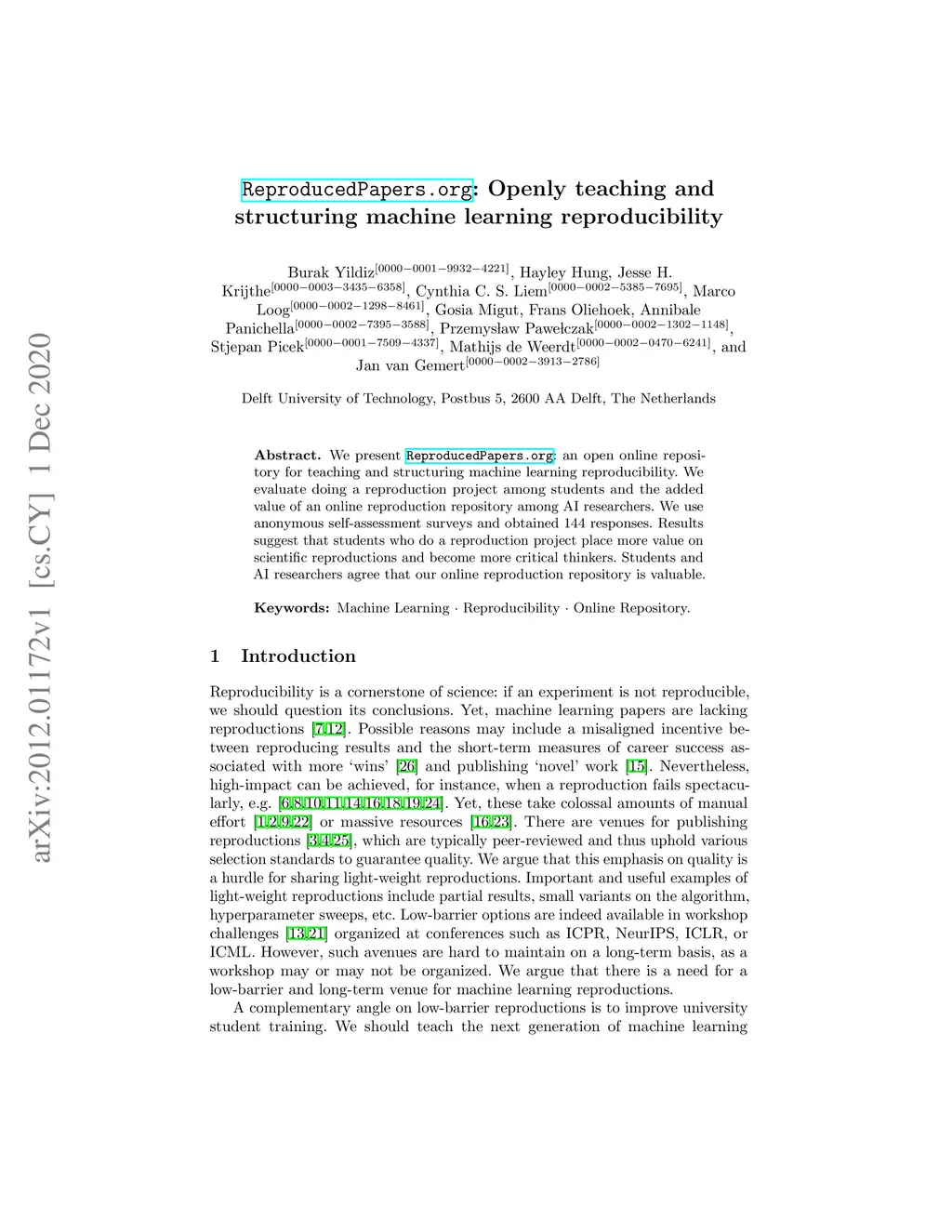 ReproducedPapers.org: Openly teaching and structuring machine learning
