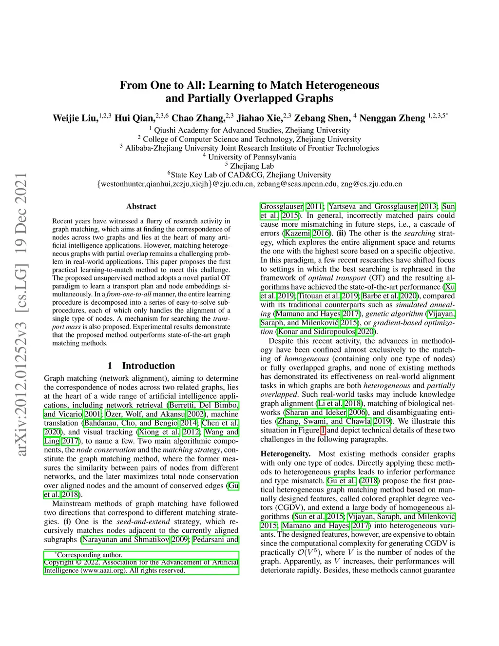 Recent years have witnessed a flurry of research activity in graph matching, which aims at finding the correspondence of nodes across two graphs and lies at the heart of many artificial intelligence applications. However, matching heterogeneous graphs with partial overlap remains a challenging problem in real-world applications. This paper proposes the first practical learning-to-match method to meet this challenge. The proposed unsupervised method adopts a novel partial OT paradigm to learn a transport plan and node embeddings simultaneously. In a from-one-to-all manner, the entire learning procedure is decomposed into a series of easy-to-solve sub-procedures, each of which only handles the alignment of a single type of nodes. A mechanism for searching the transport mass is also proposed. Experimental results demonstrate that the proposed method outperforms state-of-the-art graph matching methods.