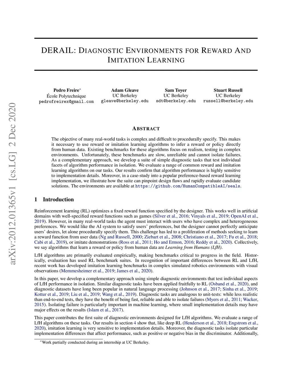 DERAIL: Diagnostic Environments for Reward And Imitation Learning