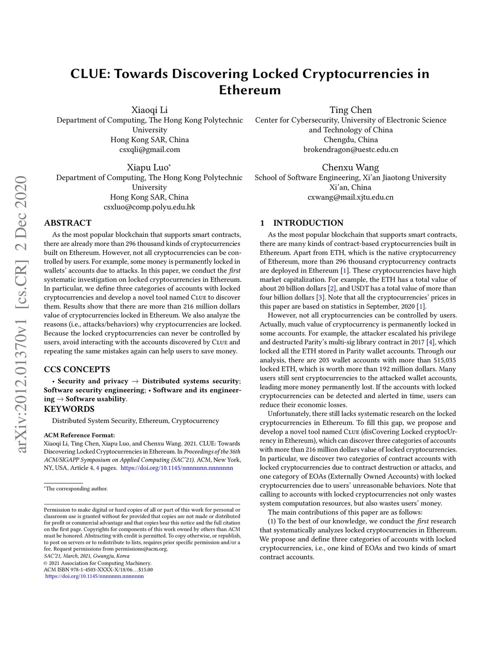 CLUE: Towards Discovering Locked Cryptocurrencies in Ethereum