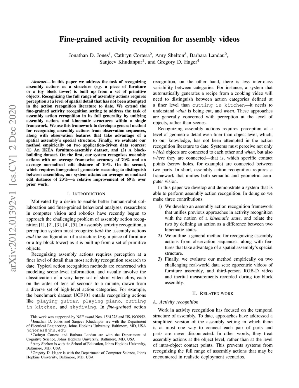 Fine-grained activity recognition for assembly videos