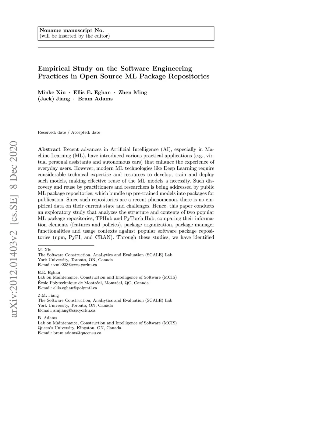 Empirical Study on the Software Engineering Practices in Open Source ML