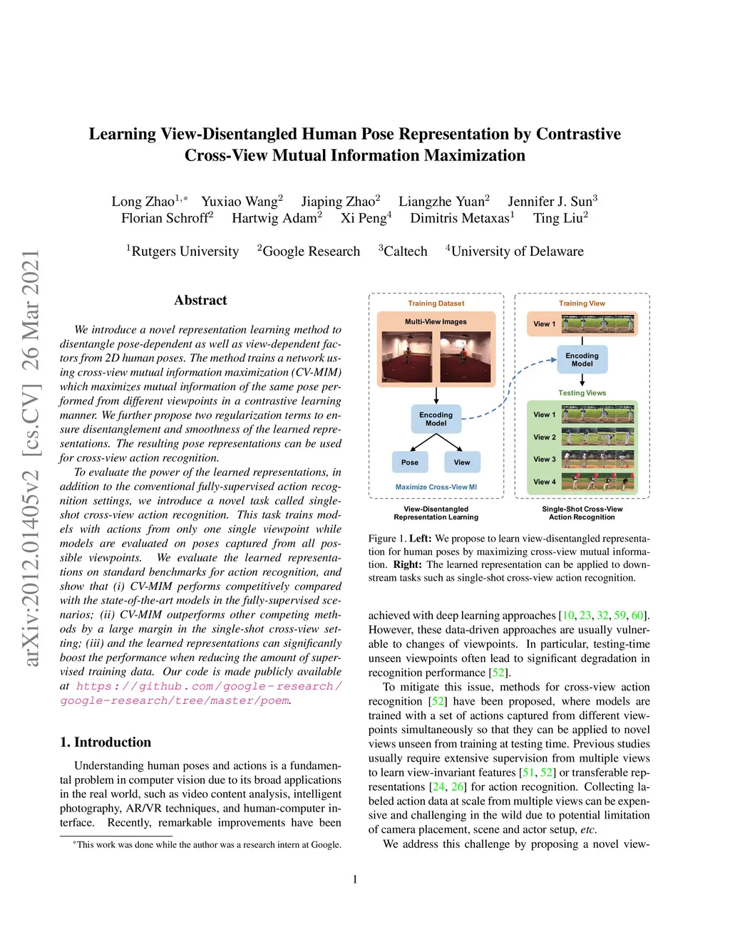 Learning View-Disentangled Human Pose Representation by Contrastive