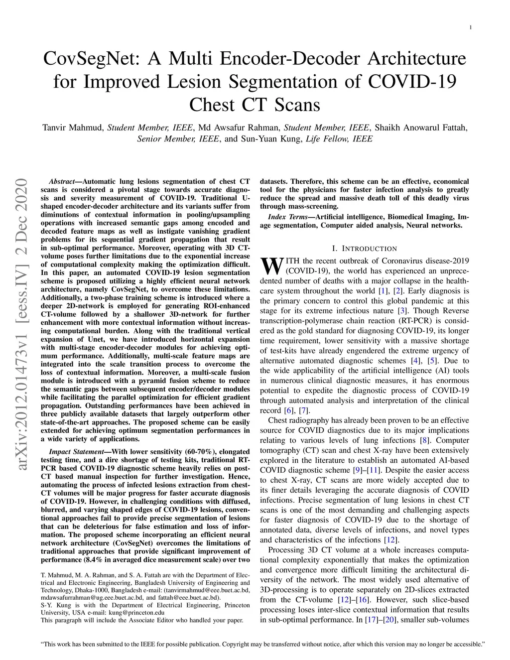 CovSegNet: A Multi Encoder-Decoder Architecture for Improved Lesion