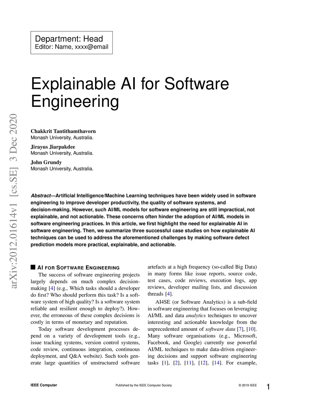 Artificial Intelligence/Machine Learning techniques have been widely used in software engineering to improve developer productivity, the quality of software systems, and decision-making. However, such AI/ML models for software engineering are still impractical, not explainable, and not actionable. These concerns often hinder the adoption of AI/ML models in software engineering practices. In this article, we first highlight the need for explainable AI in software engineering. Then, we summarize three successful case studies on how explainable AI techniques can be used to address the aforementioned challenges by making software defect prediction models more practical, explainable, and actionable.