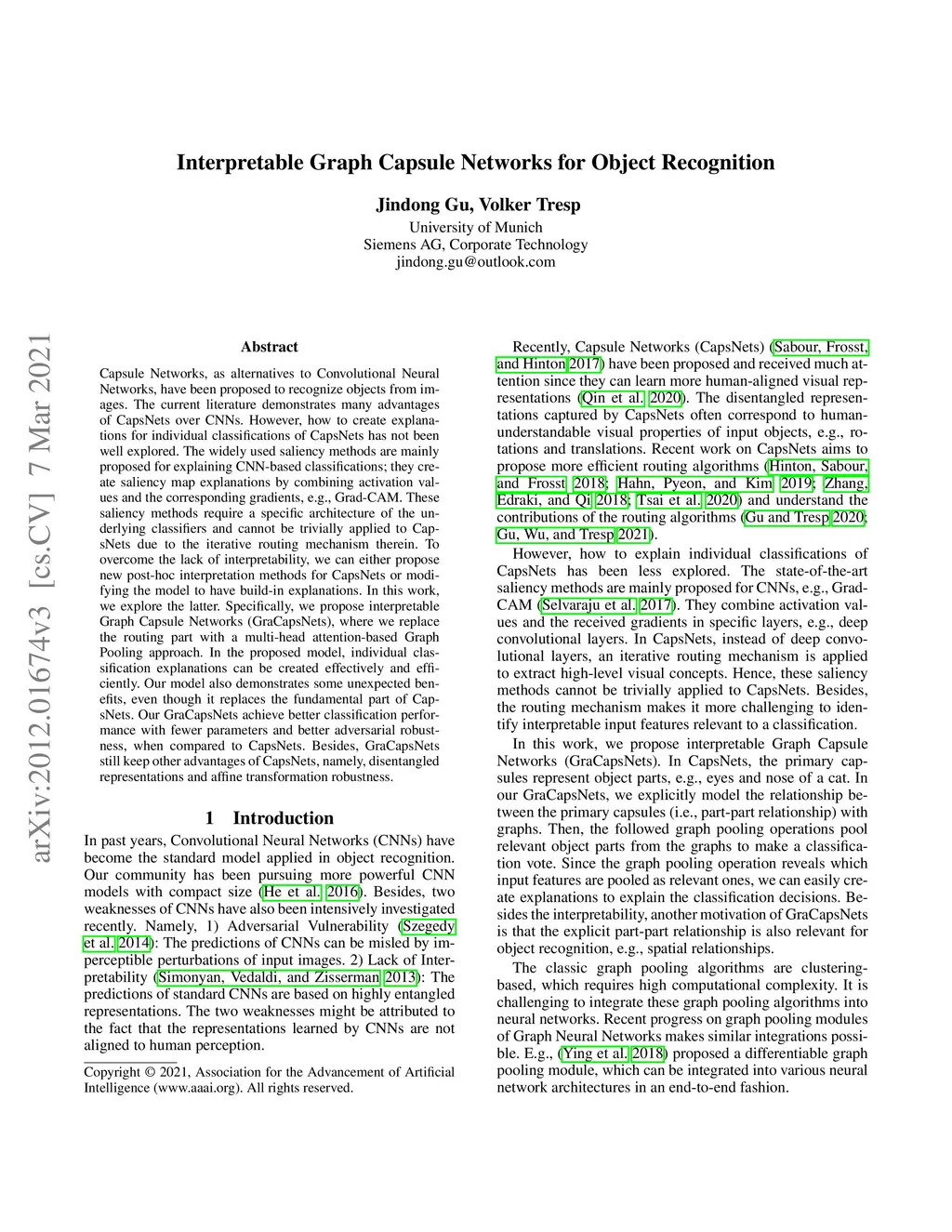 Interpretable Graph Capsule Networks for Object Recognition