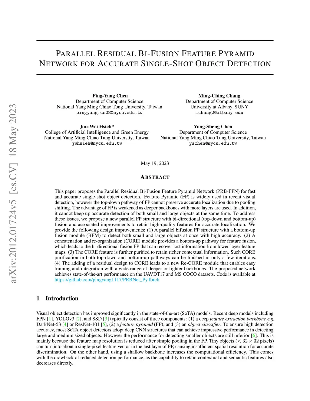 Parallel Residual Bi-Fusion Feature Pyramid Network for Accurate