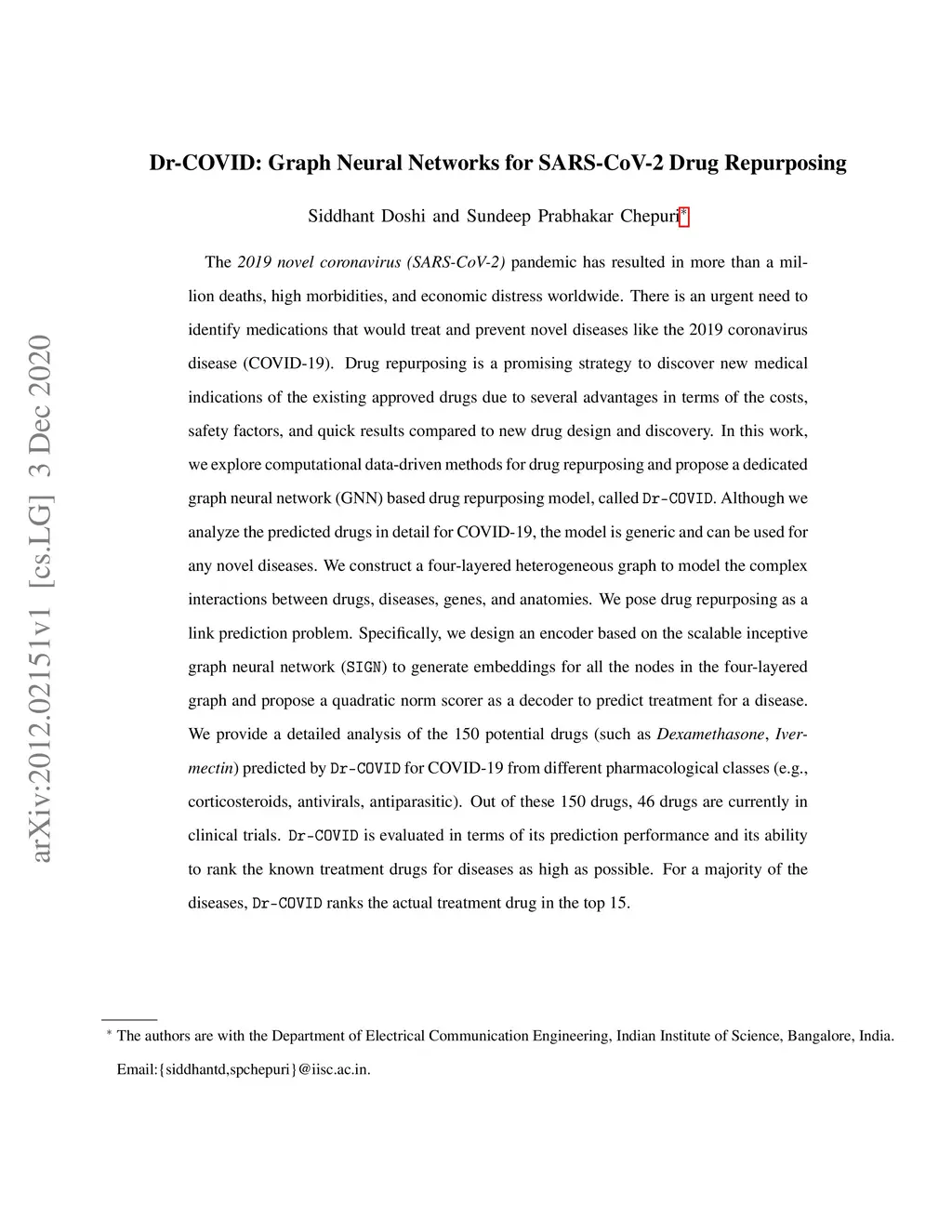 Dr-COVID: Graph Neural Networks for SARS-CoV-2 Drug Repurposing