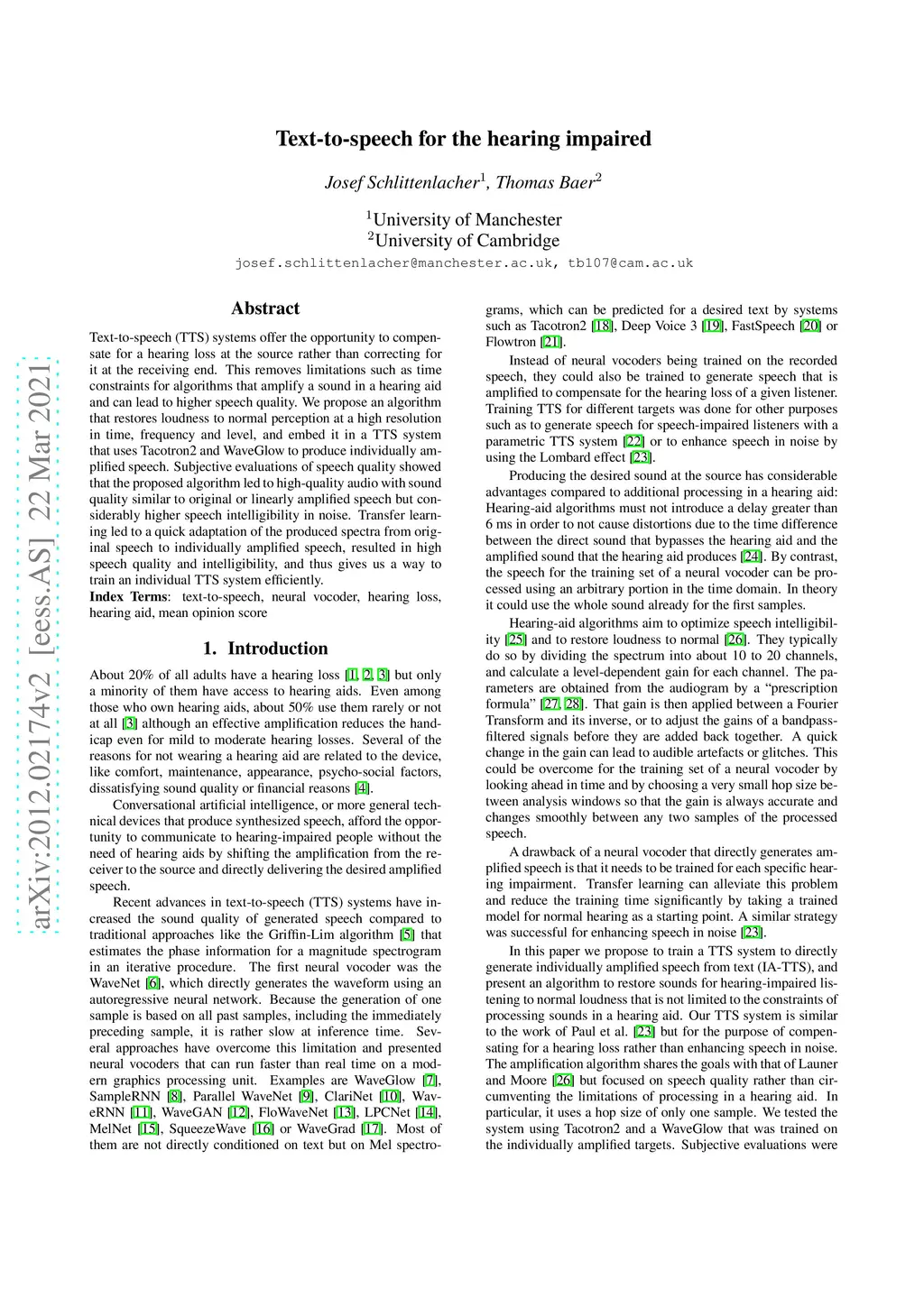 Text-to-speech (TTS) systems offer the opportunity to compensate for a hearing loss at the source rather than correcting for it at the receiving end. This removes limitations such as time constraints for algorithms that amplify a sound in a hearing aid and can lead to higher speech quality. We propose an algorithm that restores loudness to normal perception at a high resolution in time, frequency and level, and embed it in a TTS system that uses Tacotron2 and WaveGlow to produce individually amplified speech. Subjective evaluations of speech quality showed that the proposed algorithm led to high-quality audio with sound quality similar to original or linearly amplified speech but considerably higher speech intelligibility in noise. Transfer learning led to a quick adaptation of the produced spectra from original speech to individually amplified speech, resulted in high speech quality and intelligibility, and thus gives us a way to train an individual TTS system efficiently.