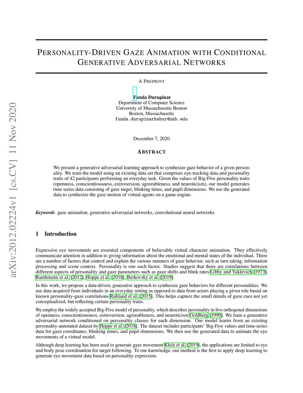 Personality-Driven Gaze Animation with Conditional Generative
