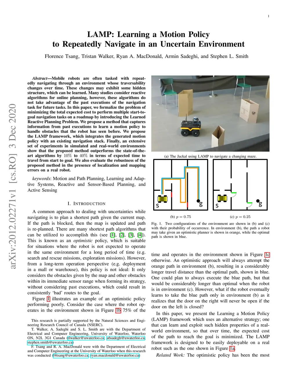 LAMP: Learning a Motion Policy to Repeatedly Navigate in an Uncertain