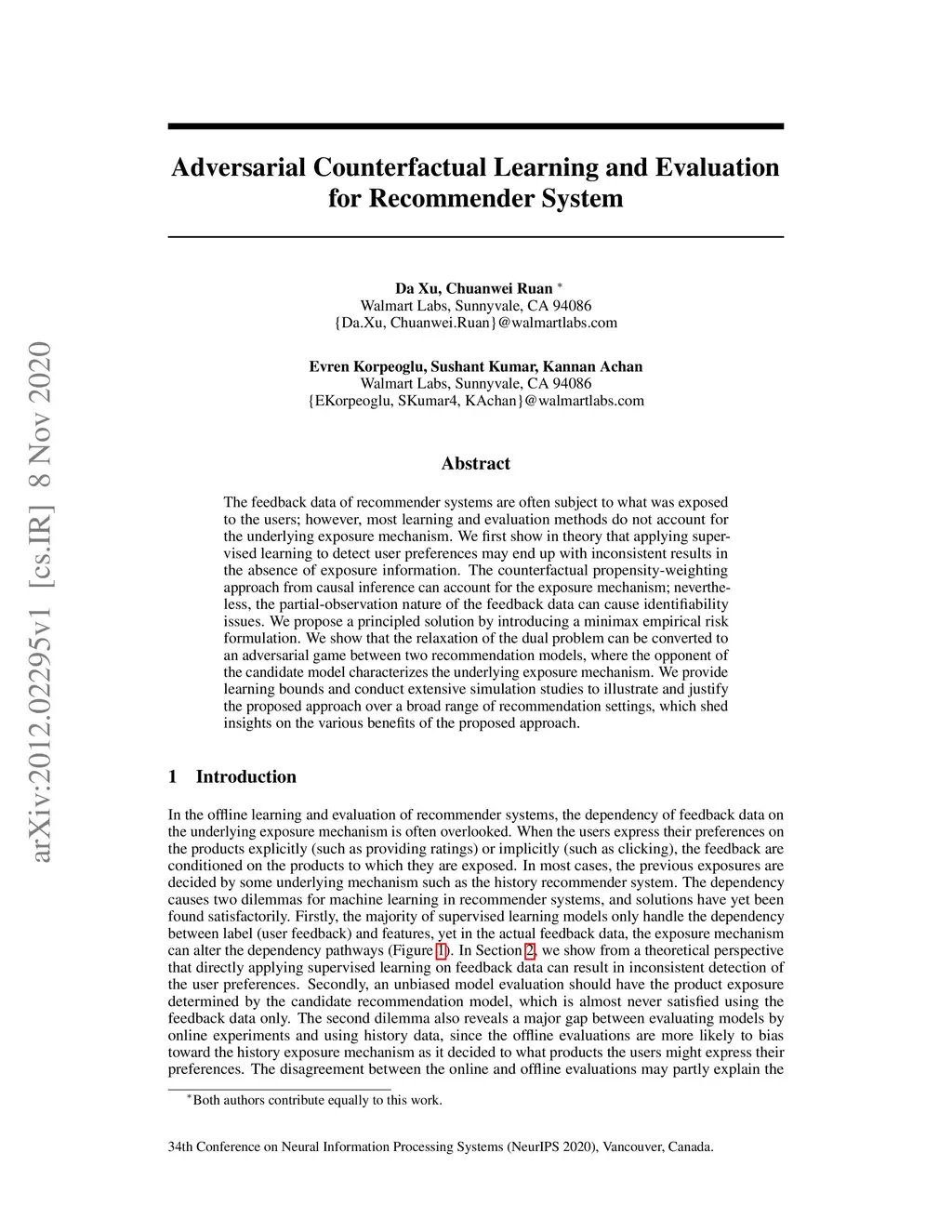 Adversarial Counterfactual Learning and Evaluation for Recommender
