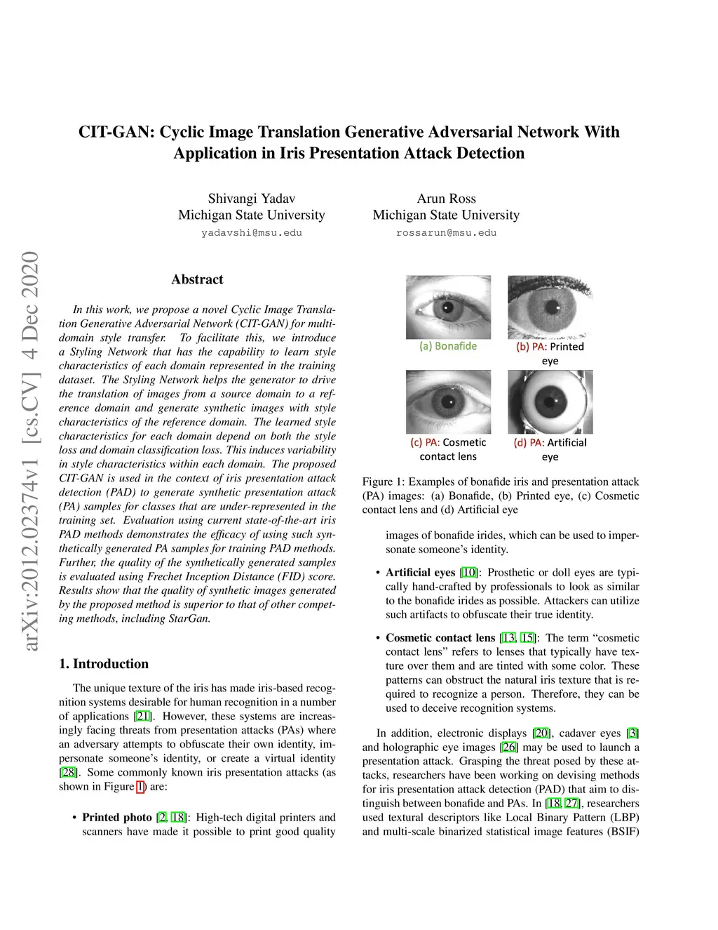 CIT-GAN: Cyclic Image Translation Generative Adversarial Network With