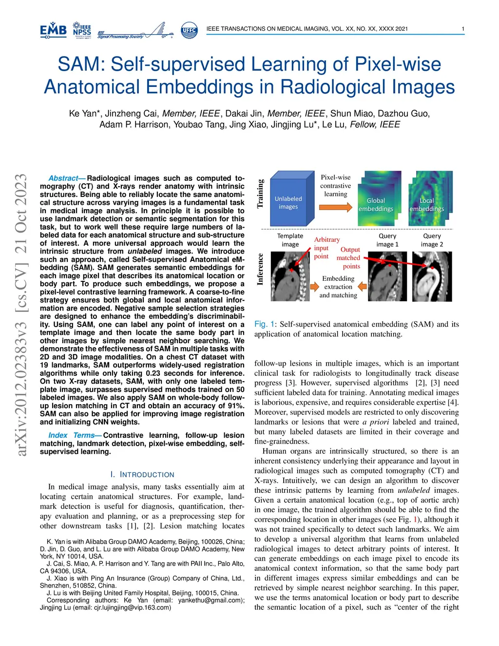 SAM: Self-supervised Learning of Pixel-wise Anatomical Embeddings in