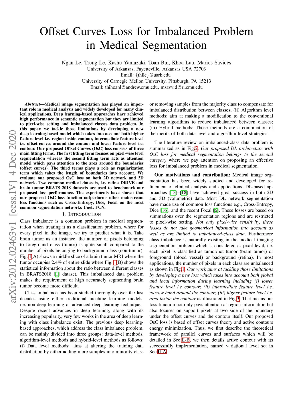 Offset Curves Loss for Imbalanced Problem in Medical Segmentation