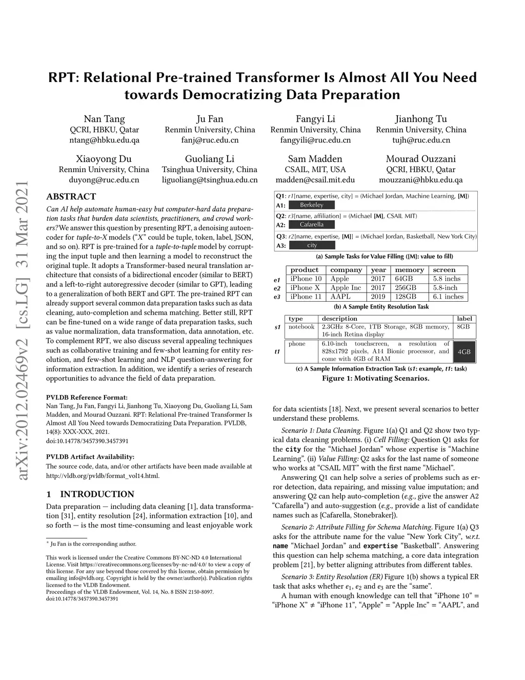 Can AI help automate human-easy but computer-hard data preparation tasks that burden data scientists, practitioners, and crowd workers? We answer this question by presenting RPT, a denoising auto-encoder for tuple-to-X models (X could be tuple, token, label, JSON, and so on). RPT is pre-trained for a tuple-to-tuple model by corrupting the input tuple and then learning a model to reconstruct the original tuple. It adopts a Transformer-based neural translation architecture that consists of a bidirectional encoder (similar to BERT) and a left-to-right autoregressive decoder (similar to GPT), leading to a generalization of both BERT and GPT. The pre-trained RPT can already support several common data preparation tasks such as data cleaning, auto-completion and schema matching. Better still, RPT can be fine-tuned on a wide range of data preparation tasks, such as value normalization, data transformation, data annotation, etc. To complement RPT, we also discuss several appealing techniques such as collaborative training and few-shot learning for entity resolution, and few-shot learning and NLP question-answering for information extraction. In addition, we identify a series of research opportunities to advance the field of data preparation.