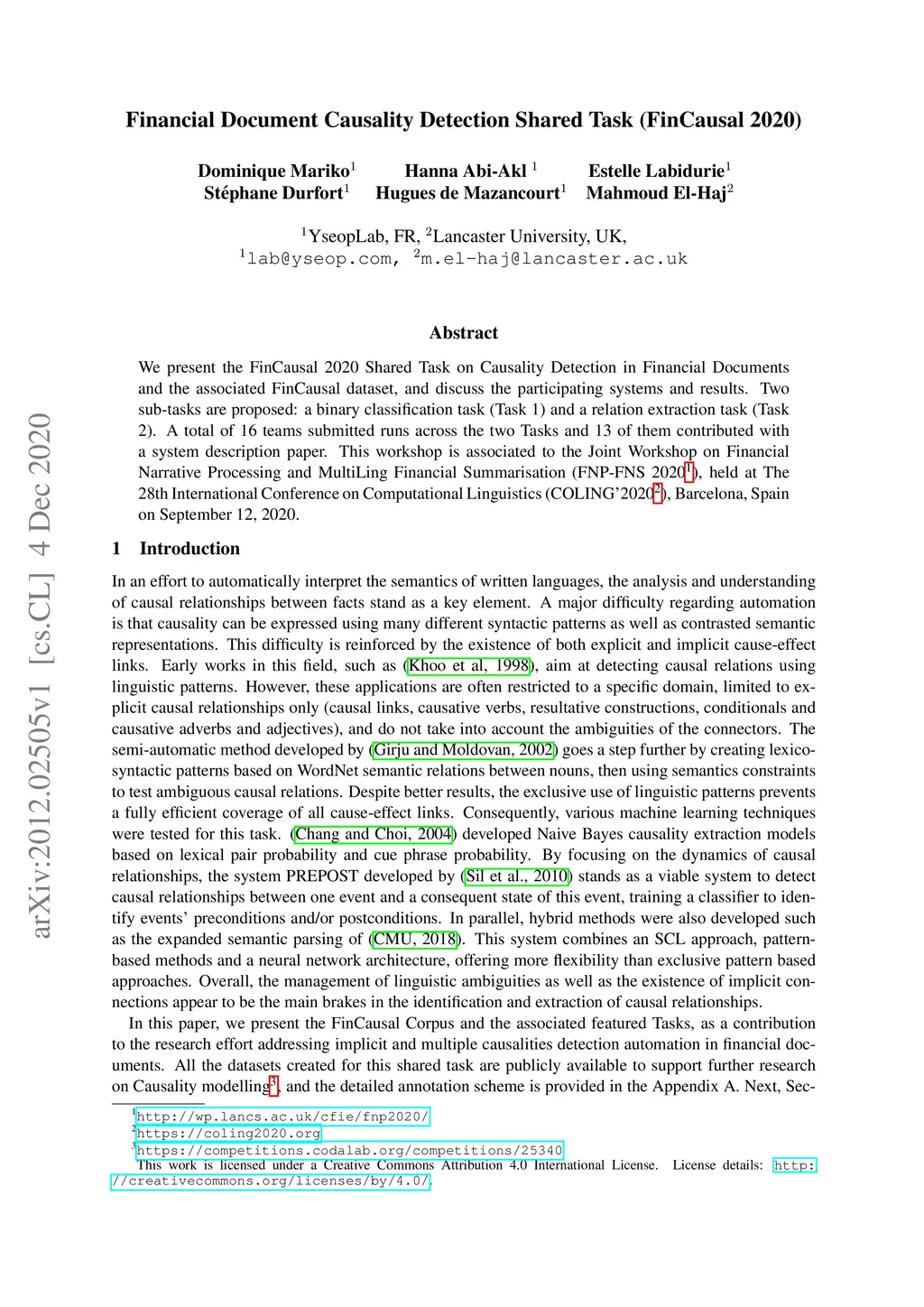 Financial Document Causality Detection Shared Task (FinCausal 2020)