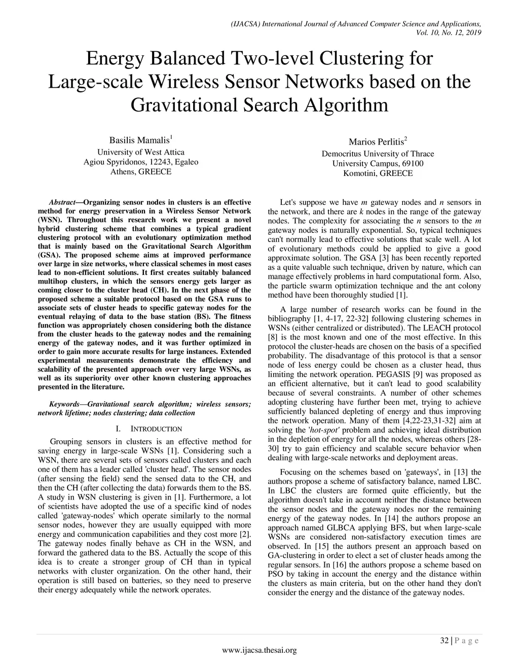 Organizing sensor nodes in clusters is an effective method for energy preservation in a Wireless Sensor Network (WSN). Throughout this research work we present a novel hybrid clustering scheme, that combines a typical gradient clustering protocol with an evolutionary optimization method that is mainly based on the Gravitational Search Algorithm (GSA). The proposed scheme aims at improved performance over large in size networks, where classical schemes in most cases lead to non-efficient solutions. It first creates suitably balanced multihop clusters, in which the sensors energy gets larger as coming closer to the cluster head (CH). In the next phase of the proposed scheme a suitable protocol based on the GSA runs to associate sets of cluster heads to specific gateway nodes for the eventual relaying of data to the base station (BS). The fitness function was appropriately chosen considering both the distance from the cluster heads to the gateway nodes and the remaining energy of the gateway nodes, and it was further optimized in order to gain more accurate results for large instances. Extended experimental measurements demonstrate the efficiency and scalability of the presented approach over very large WSNs, as well as its superiority over other known clustering approaches presented in the literature.